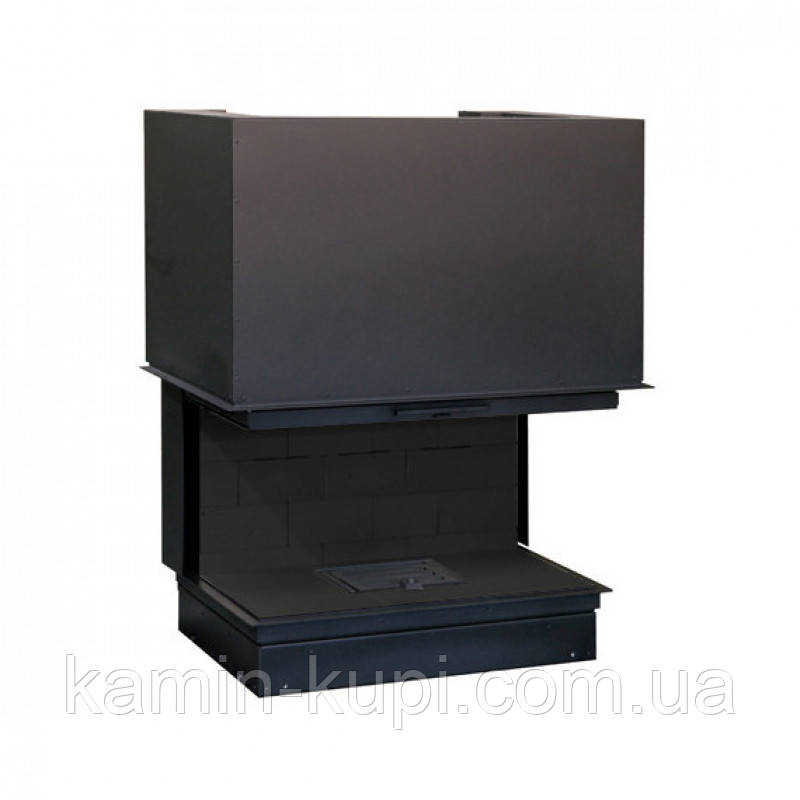 Повітря на горіння подається з вулиці (як варіант — з підвалу чи іншого підсобного приміщення), тому тиск у кімнаті не падає, і камін не димить. Крім того, з кімнати, що обігрівається, не випалюється кисень. А отже, в холоди не потрібно відкривати вікна і випускати тепло, щоб забезпечити приплив свіжого повітря. Димозбірник високий та має форму конуса. Димові гази підіймаються без завихрень і накопичуються у верхній частині димозбірника. Коли ви відкриваєте дверцята топки, щоб підкинути дров, то в приміщення потрапляє на 80% менше від диму. Топка EPI 950 з високим димозбірником має трохи менший ККД, але вона зручніша в експлуатації. Система подає тепле повітря у сусідні приміщення та поверхи. Навколо камери згоряння встановлюється кожух. До нього підключаються гнучкі негорючі гофровані труби. Цими трубами гаряче повітря надходить в сусідні приміщення.